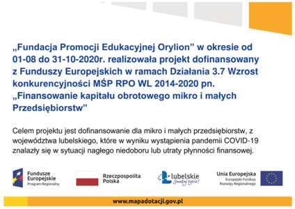 Celem projektu było dofinansowanie dla mikro i małych przedsiębiorstw, z województwa lubelskiego, które w wyniku wystąpienia pandemii COVID-19 znalazły się w sytuacji nagłego niedoboru lub utraty płynności finansowej.